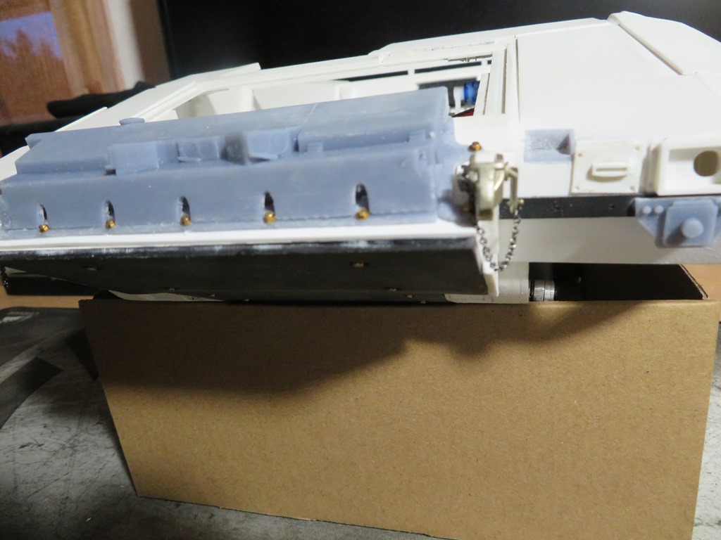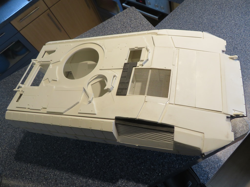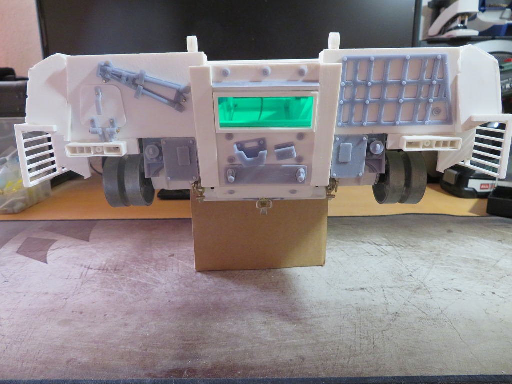 Die Heckklappe sowie der Turm sind im großen und ganzen verschliffen, sodass daran weiter gearbeitet werden kann.