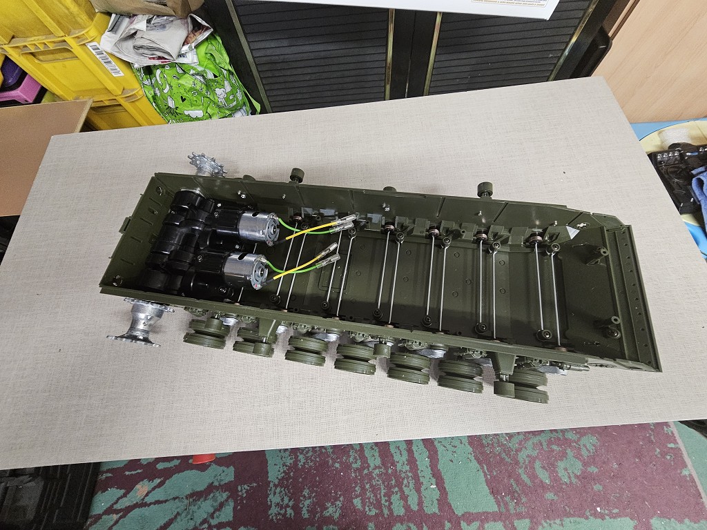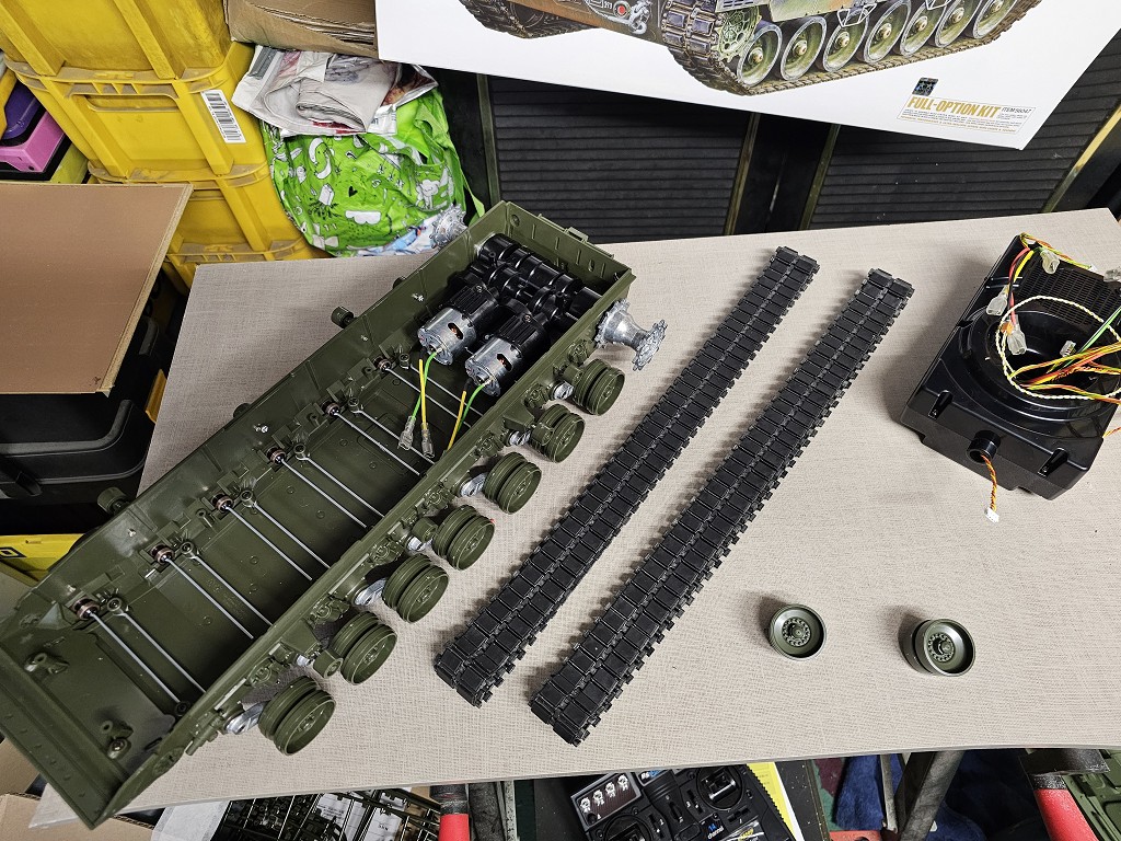 Nur noch neue Kettenspanner rein, Farbe drauf, die Gummies drauf, die Kette drauf und das Fahrwerk ist fertig.