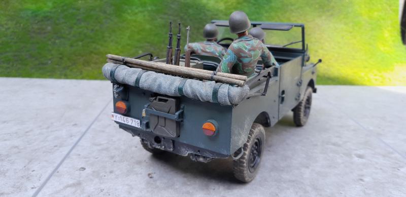 Hier mal ein paar Bilder zum Tempo Land Rover Lizenzbau, der 1956 vom Bundesgrenzschutz übernommen und in der Bundeswehr aufgebraucht wurde. Da die Fahrzeuge erst nach und nach umlackiert wurden, ist meiner noch in der ürsprünglichen Lackierung unterwegs. Die Besatzung trägt die