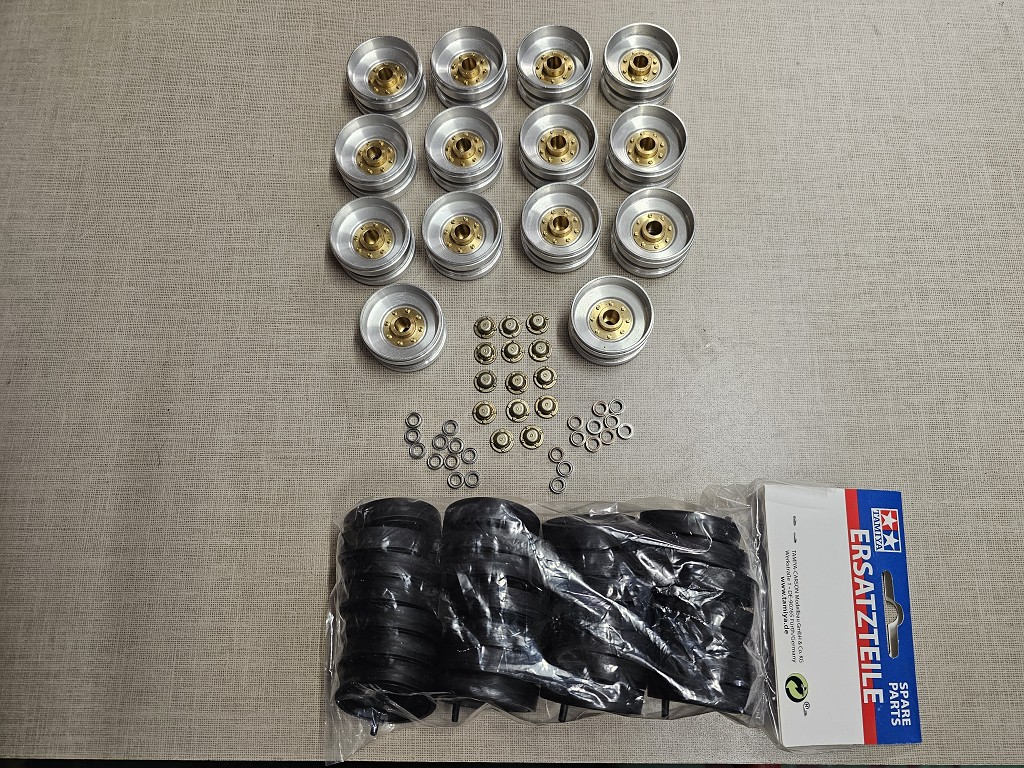 biete AFV ALU-Laufrollen mit Laufrollengummi, Kugellager und Nabendeckel für den Tamiya Leopard 2
