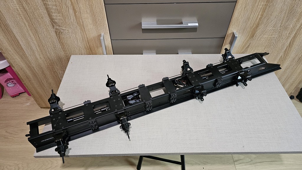 sehe ich das richtig, dass die beiden Lenkservos hinten in der Nähe der festen Hinterachsen sitzen und das Schaltservo vorn an den Lenkachsen? Was haben sich unsere asiatischen Freunde dabei gedacht? -- Isch ´abe ga´ keine Fahrrad!