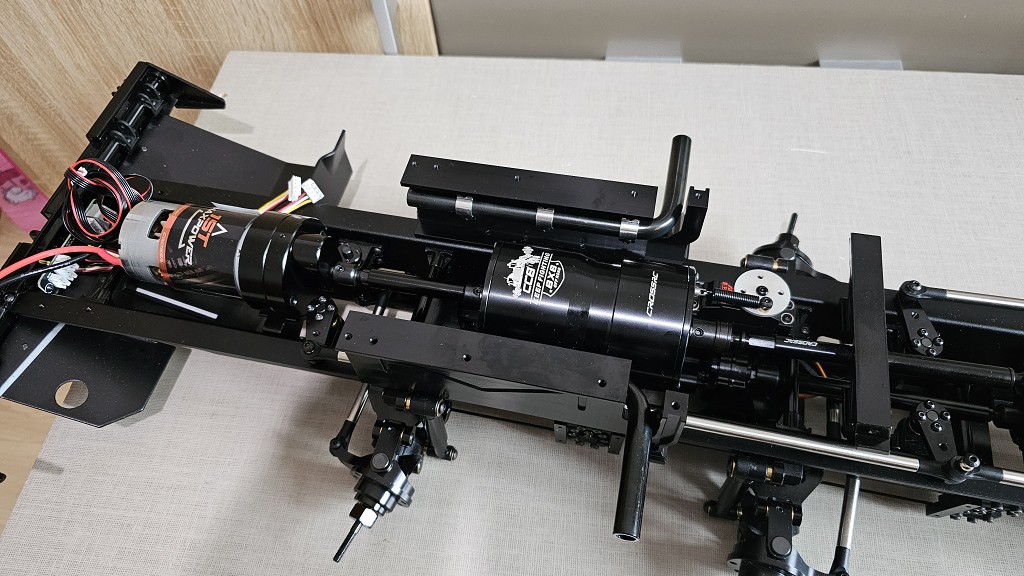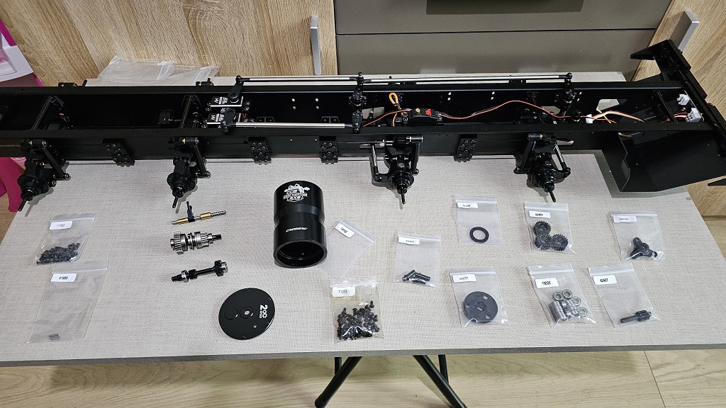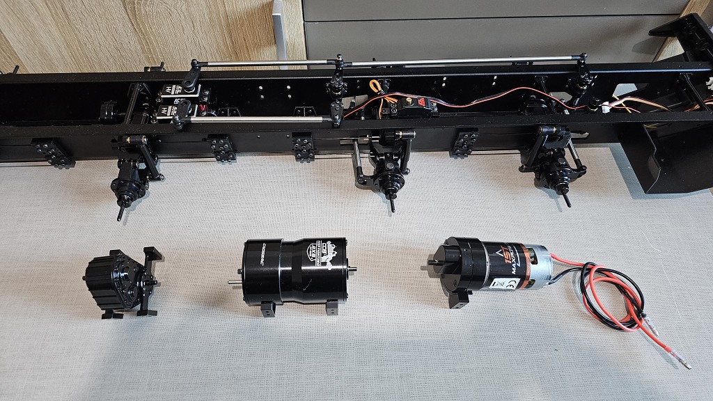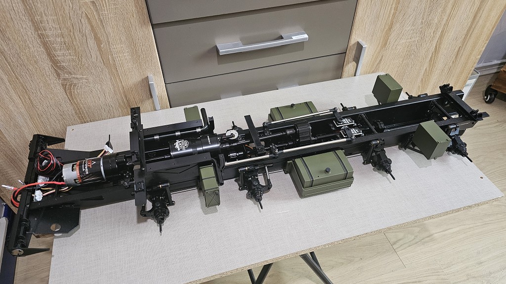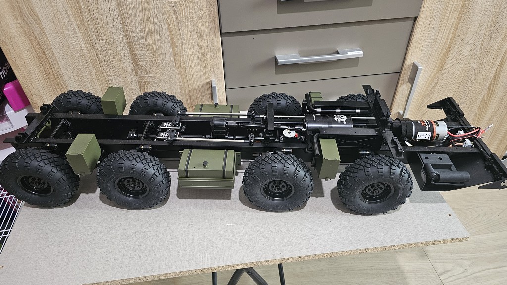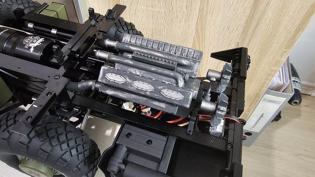 Ich kann dir nur sagen, das Motor, Getriebe und Verteilergetriebe noch vor die beiden Lenkservo´s kommen