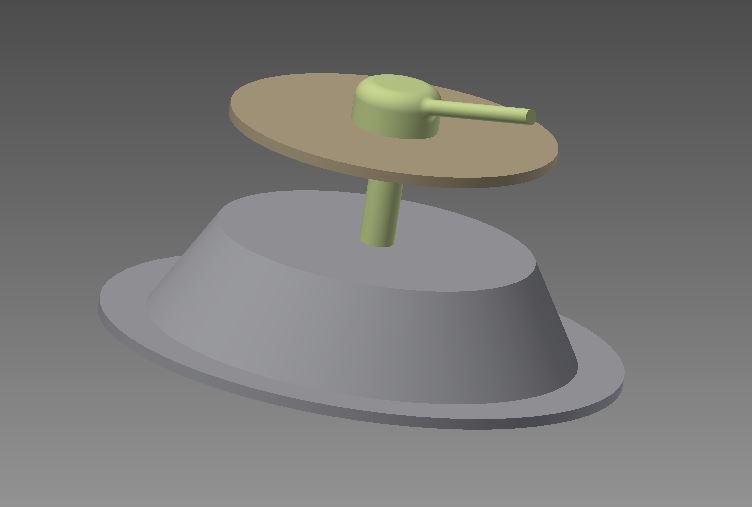 Das Ersatzrad wird zwischen dem grauen Kegelstumpf und der brauen Platte eingespannt.