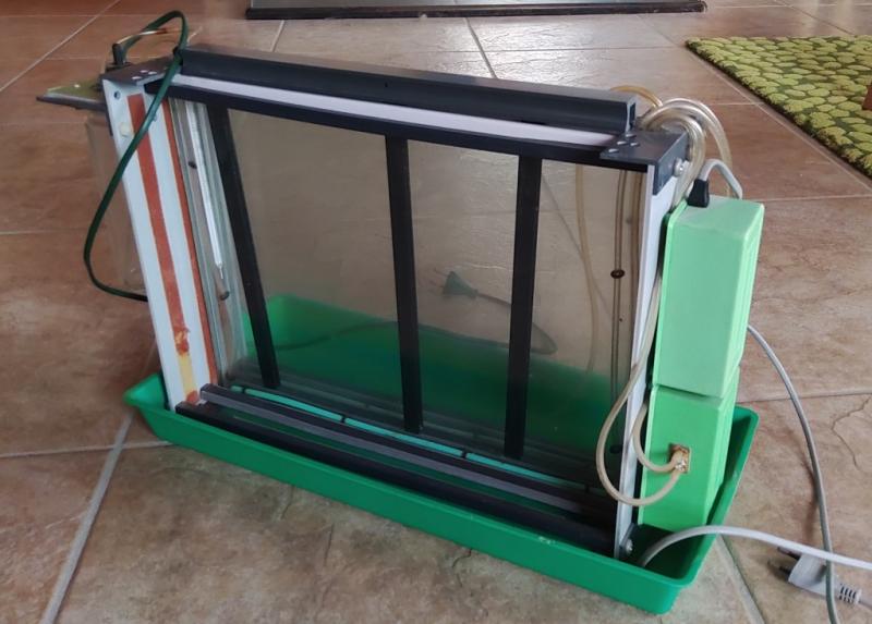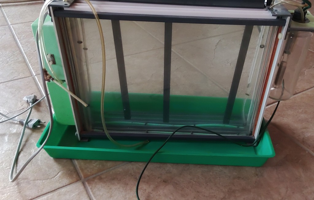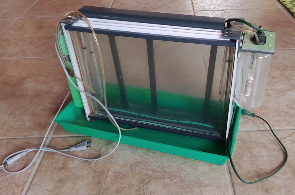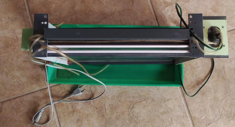 Die Anlage besteht aus zwei Glasküvetten, dem heizbaren Vorlagebehälter für die Ätzlösung und zwei Luftpumpen, die in den Küvetten für eine Bewegung des Mediums (Entwicklerflüssigkeit, Ätzlösung) sorgen.