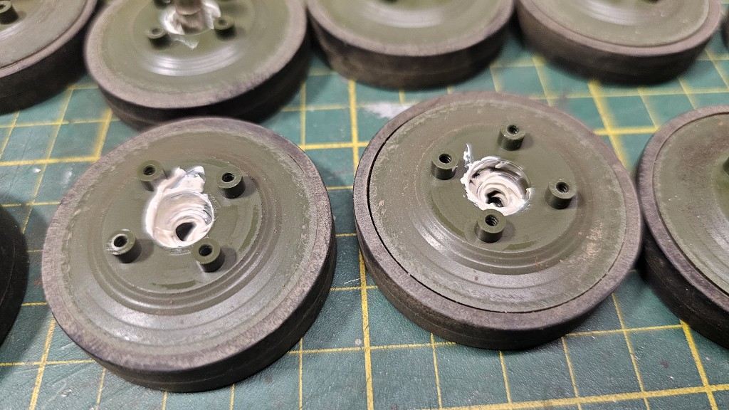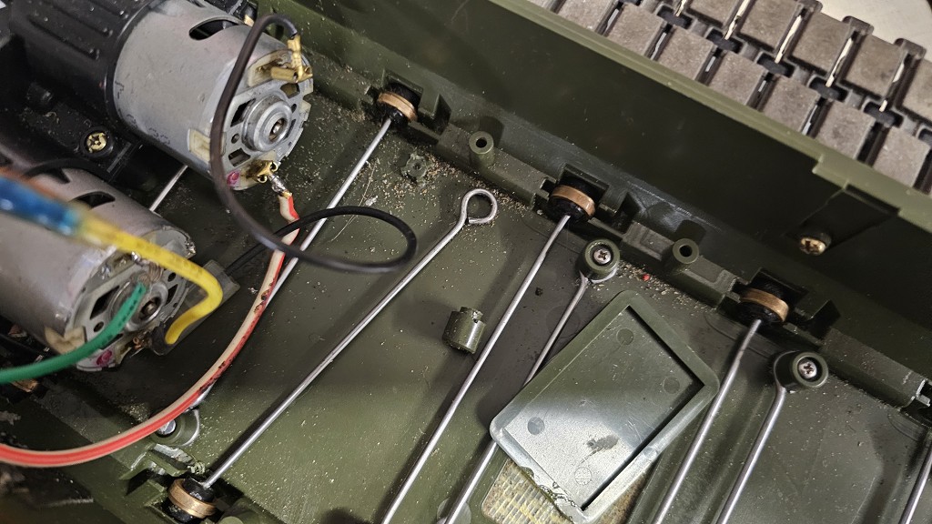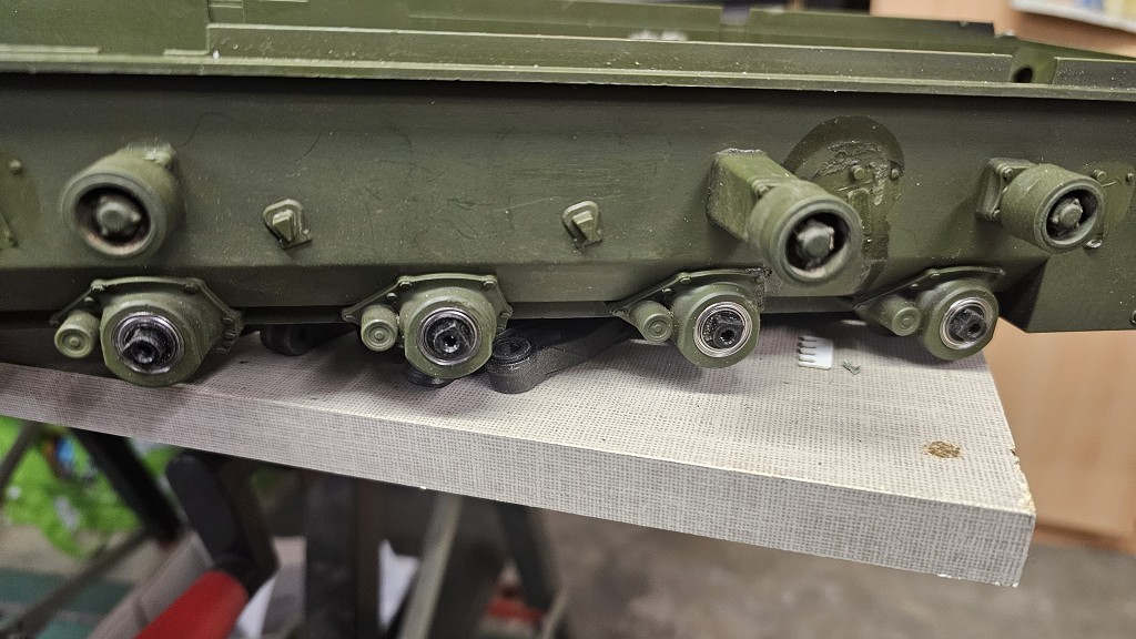 für die Leiträder, Laufrollen und Schwingarmlager gibt es mal ein paar Kugellager (nicht weil es nötig ist - nö, weil sie noch in der Krabbelkiste rumliegen) natürlich bekommen die Leiträder auch Metall-Ketten-Spanner ...