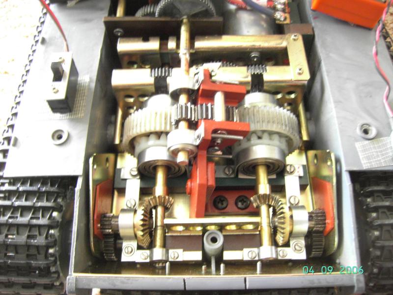 Ein solches Fahrverhalten ist natürlich unerwünscht, also muß Abhilfe her! Ein Schneckengetriebe ist mehr oder weniger selbstsperrend und wäre daher gut geeignet, nur gibts die in unseren Größen kaum und, viel schlimmer, im Defektfall (und da genügt schon ein leerer Akku) wird der 100 kg-Panzer mit seinen blockierenden Ketten zur "Immobilie", und der arme Fahrer kann den ADAC rufen.....