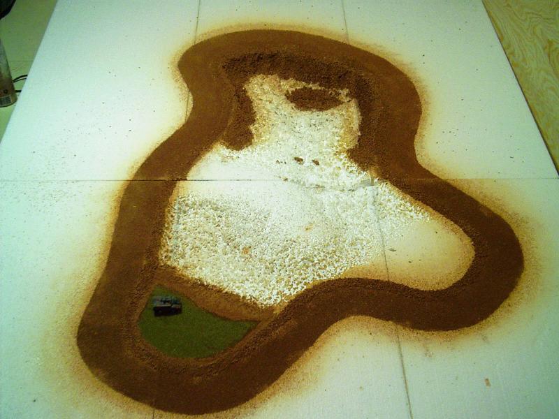 gestreng dem Motto, daß auch kleine Panzer Spaß machen können, habe ich begonnen mir ein 2m x 1.5m großes befahrbares Diorama zu bauen.