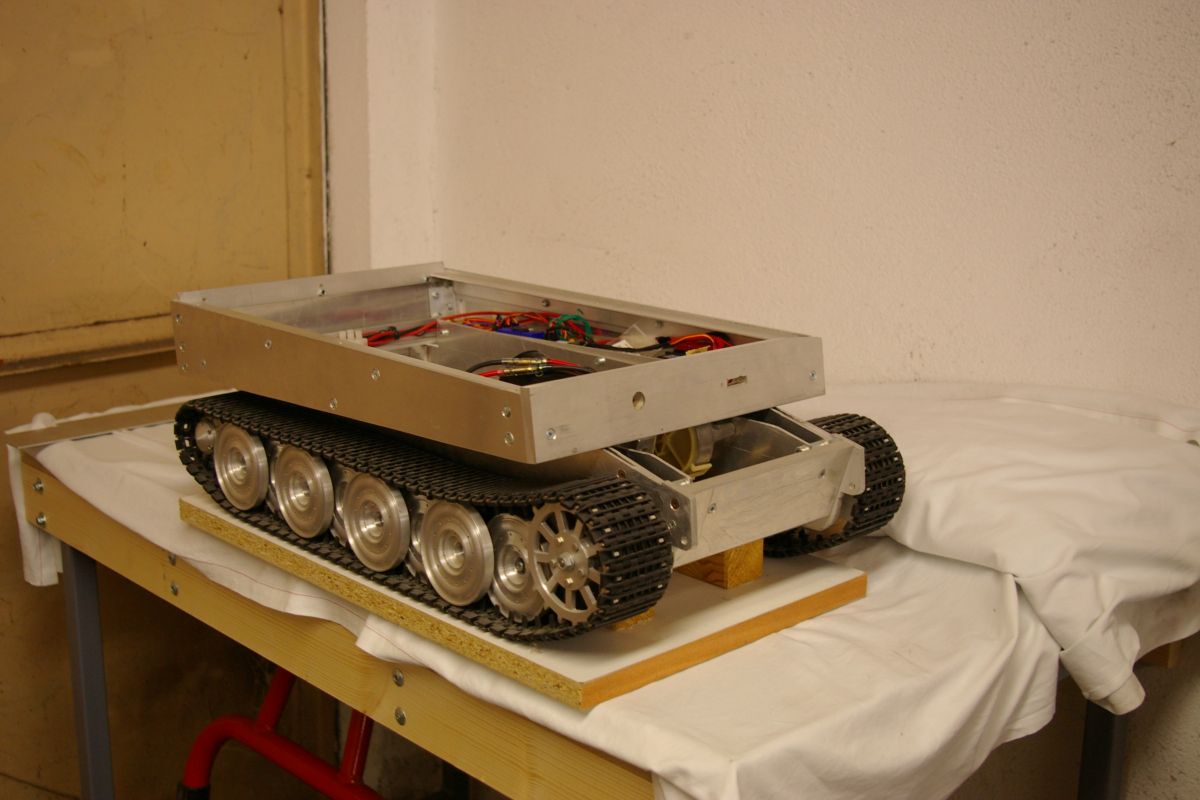Der Bau des Panzers wurde von mir ja schon 2002 begonnen und war bis zur Fertigstellung der Wanne, Oberwanne und des Laufwerks mit Kette und Motoren nebst Elektronik gekommen, wie man auf der Übersicht sieht.