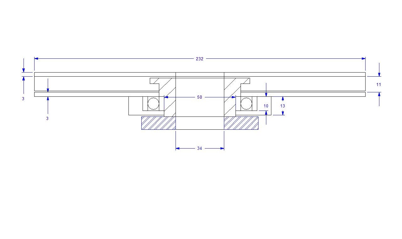 Verwendet werden soll ein Rillenkugellager 16010 (80x50x10) und ein Zahnrad Modul1 mit 80 oder 100 Zähnen dazu kommt dann ein RB35-600 Motor mit M 1 Ritzel.