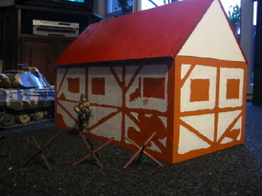 mit dem Haus geht es weiter voran. War fleißig. Habe die Wände mit "Terracotta" grundiert. Die Farbe soll als Backstein unter dem abgeblätterten Putz hervorschauen. Dann Balken des Fachwerks sowie Türen und Fenster angezeichnet und die Zwischenräume putzigweiß gemalt. Das Dach ist rotbraun geworden....Ziegelstein eben....als nächstes kommen die Fachwerkbalken...