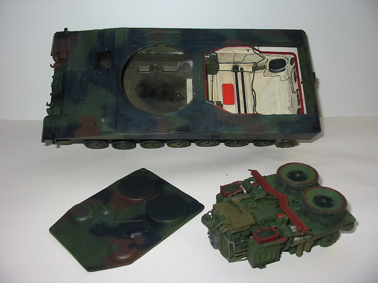 Zum Verständnis: der Preis ist berechnet auf ein volldetailiertes Modell in 1:16, so wie es in meiner eigentlichen Sparte, nämlich 1:35, üblich ist, aslo mit wirklich allem was machbar ist. Als Beispiel soll Euch dieses Bild des von mir entwickleten und produzierten Leopard 2 Triebwerks mit Motorraum dienen. Daran könnt Ihr erkennen, daß der Detailierungsgrad keine Wünsche offen lässt. Das hat aber seinen Preis. Der Triebwerksbausatz kostet 58.- Euro. Zur Größe: ca. Länge 85 mm, Breite 78 mm, Höhe 35mm, bestehend aus 123 Bauteilen. Das ist die Bausatzqualität, die in 1:35 erwartet und verlangt wird. In 1:16 scheint dieses Detailfülle und Detailtreue nicht in diesem Ausmaß verlangt zu werden.