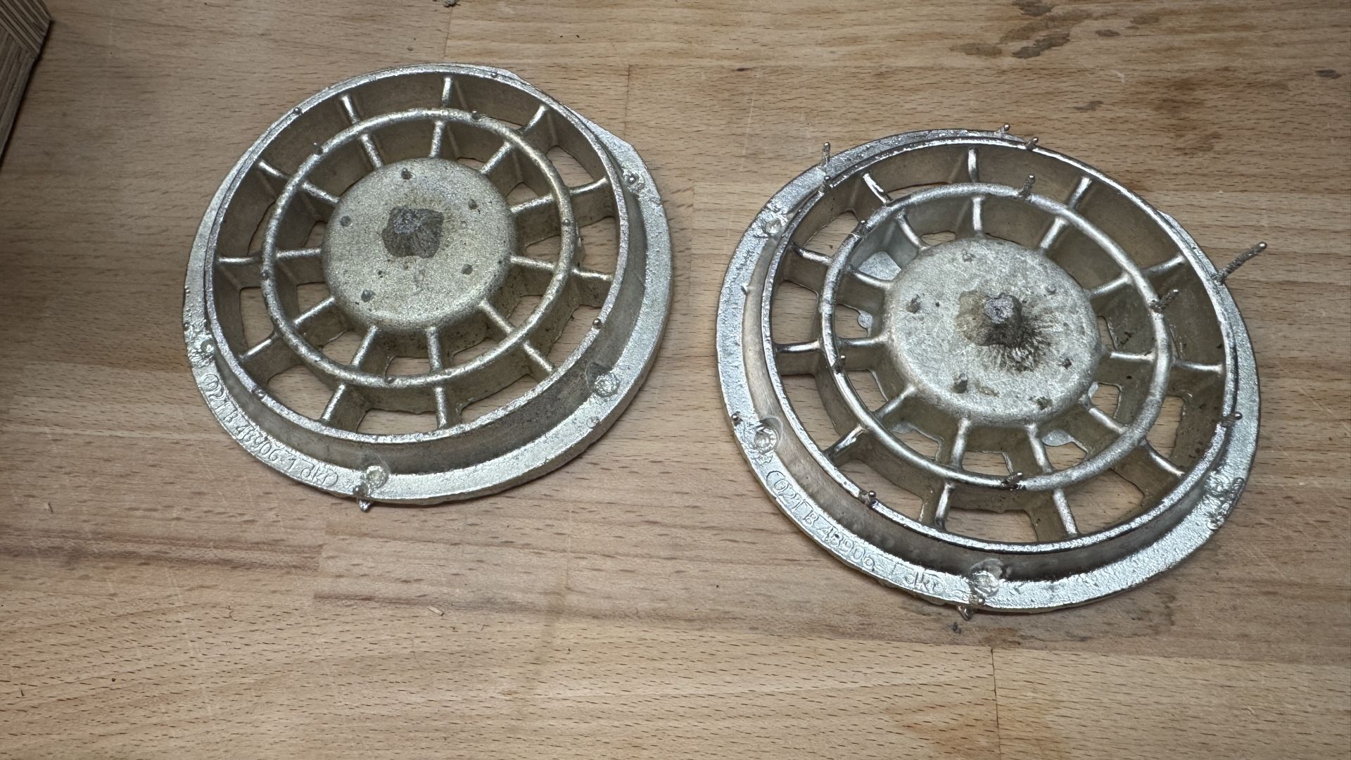 Und weiter gings am Wochenende mit der Eröffnung einer Gießerei. Das Gießen stellte sich als nicht ganz so einfach dar, aber nach ein paar Versuchen und anpassen der Temperatur der Schmelze sind bereits brauchbare Rohlinge raus gekommen. Das gedruckte Urmodell habe ich in Silikon abgeformt, um auch die Gussnummer der Ventilatorpanzer sauber in die Form zu bekommen. Anschließend das Zinn und die Form erwärmt und mit ca. 270° gegossen. Etwas Nacharbeit ist nun erforderlich, aber ich bin mit dem ersten Ergebnis schon recht zufrieden.