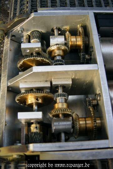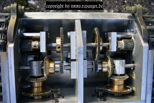 Das Getriebe hatte ich selbst gebaut, zu einer Zeit, wo es von Tamiya noch keinen Doppelmotorantrieb gab. Das alte Getriebe mit den Kupplungen, hatte bei mir schnell den Geist aufgegeben. Heute würde ich allerdings eher auf die neuen Tamiya-Getriebe zurückgreifen, da die Kosten und der Aufwand doch recht hoch sind und die Tamiya-Getriebe völlig ausreichend sind. |