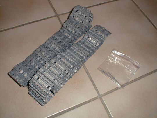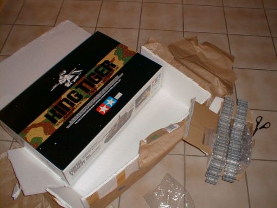 Nach knapp 3 wöchigem warten ist es nun soweit, die beiden Pakete aus Hong Kong sind angekommen. Da ich zur Weihnachtszeit bestellt habe, hat sich die Lieferung doch enorm verzögert. Den Pershing mußte ich mir noch vom Zoll abholen, diese beiden Pakete wurden mir direkt bis vor die Haustür geliefert. In dem kleinen Paket befinden sich die Metallketten von Kenny Kong aus Hong Kong. Ich habe sie zusätzlich bestellt, um dem Königstiger ein realistischeres Fahrverhalten zu spendieren. Die Ketten sind von bester Qualität, komplett entgratet und montiert. In dem beiliegenden Tütchen, befinden sich noch zusätzliche Endverbinder.