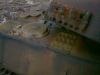 Mit dem Lötkolben schmolz ich 2 Einschusslöcher in die Panzerfront. Das Einschussloch vorne im Wannenoberteil ist wesentlich tiefer als das eigentliche Plastik dick ist, deshalb wurde die Stelle zuvor mit Polystyrolplatten hinterklebt. Als Schmauchspur diente hier wieder schwarze Pastellkreide, grob aufgetragen und mit Lack fixiert.