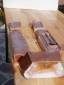 Die Werkzeugkisten habe ich aus 0,5mm starkem Kupferblech hergestellt. Dieses Material lässt sich sehr leicht Biegen und später mit einfachem Lötzinn verlöten. Im nachhinein muss ich leider sagen das ich sie lieber aus 0,5mm starken Stahlblech hätte machen sollen, dies lässt sich ebenso leicht verarbeiten ist aber wesentlich Originalgetreuer (später mal anfallender Rost.) Na ja die Herstellung ist auch hier sehr einfach: Die Längen werden in den Maßstab umgerechnet und es wird ein Faltplan auf das Kupferblech gezeichnet. Das heißt das dass herzustellende Teil wie bei einem Papierwürfel einfach auseinandergefaltet wird und auf das Kupferblech übertragen wird. Diese Konturen lassen sich mit einer Kräftigen Schere gut ausschneiden. Anschließend werden die "Ecken" hochgebogen und fertig ist der Würfel. Zum Schluss noch die Kanten mit einem Starken Lötkolben oder einen kleinen Schweißbrenner im Taschenformat (bis ca. 1000°, kostet so um die 25,-DM) mit handelsüblichen Weichlot zusammenlöten. Benötigtes Werkzeug waren : Reißnadel, Schieblehre, Leichte Blechschere, Minni Schweißbrenner, Lötzinn.