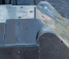 Auf der Innenseite der Wanne ist in der 10mm Wellen eine 5mm Bohrung eingebracht, diese dient zur Aufnahme der Drehstäbe. Quer zu dieser Bohrung befindet sich eine Madenschraube die das Durchdrehen der Drehstäbe verhindern soll. Die Drehstäbe sind zum besseren Halt noch am Ende abgeflacht. Auf der Gegenüberliegenden Seite der Drehstäbe werden diese durch einen „U-Förmigen“ Bügel auf den Wannenboden gepresst, so ist auch bei zugebauter Wanne später einmal ein exaktes Einstellen der Federung von der Unterseite der Wanne her möglich.