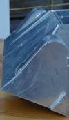 Bei den Scharnieren hatte ich mich für das Gießen in Kunststoff entschlossen, was sich nachher jedoch als zu brüchig erwies. Daher werden die Scharniere jetzt nachträglich aus Alu gefräst und gegen die bisherige Lösung ausgetauscht.