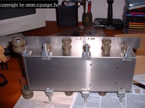 Innerhalb der Radaufhängung wurde vollständig auf Kunststofflaufbuchsen verzichtet. Die Räder an den Rollenwagen werden nunmehr an Metallachsen verschraubt. Diese Achsen können auf Wunsch mit Kugellagern versehen werden, standardmäßig liegen dem Baukasten Sinterlager bei.