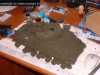 Die Kette besteht nun aus Kunststoff (gleiches Material wie beim Tiger I ?). Das war nicht unbedingt nötig aber schlecht ist sie nicht. Die Kette liegt vormontiert in der Schachtel. Die Fahreigenschaften der Kette sind besonders auf Sand sehr gut, da sie anders als die Kette des alten Sherman in der Lauffläche geschlossen ist, d. h. dort können sich nicht so leicht Steine festsetzen.