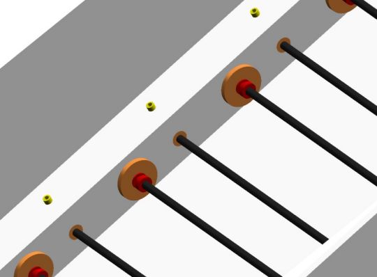 | Als Federung haben wir eine Drehstabfederung gewählt. Berechnung ergaben, dass 3mm starker Silberstahldraht für die Drehstäbe genügen müsste. Karsten hat die Drehstäbe dementsprechend gefertigt und ein Einbau dieser in eine Testwanne konnte nach ersten Test unsere getroffenen Annahmen nur bestätigen. |