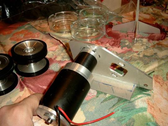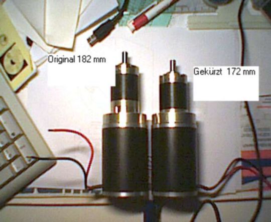 | Die Auslegung der Motoren und der Getriebe wurde von Gerfried und Uli übernommen. Zum Einsatz kommen RB-4 Industriemotoren welche wir direkt vom Hersteller bezogen haben. Die dazu passenden Getriebe haben wir bei einer Spezialfirma anfertigen lassen. Allerdings sind die Getriebe etwas zu lang, sodass alle von Gerfried um ungefähr 10 mm gekürzt werden müssen. Die Motorhalterung wird ebenfalls von Gerfried konstruiert und gefertigt. |