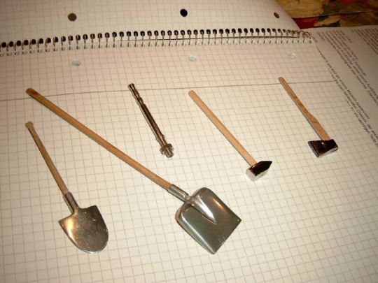 | Die Werkzeuge und andere Anbauteile werden von Hans und Thommy hergestellt. Die Griffe und Stile sind aus Holz, die Werkzeughalterungen sind selbstverständlich zum Öffnen, sodaß das Werkzeug entnommen werden kann. Hier gilt: ein Bild sagt mehr als 1000 Worte. |