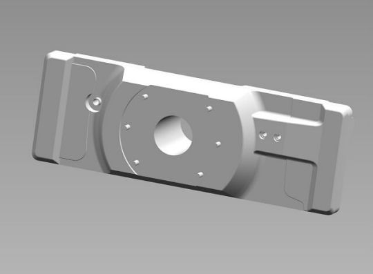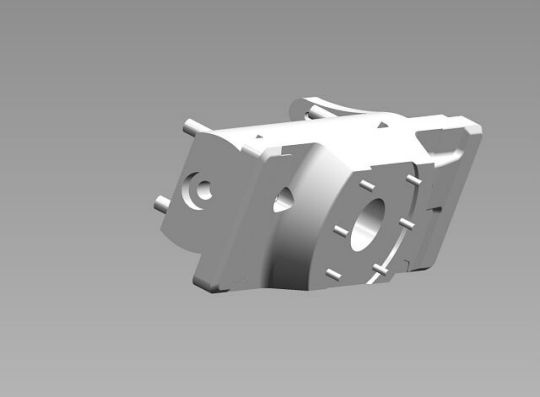 Alle Bohrungen 3,3mm vorbohren, die Bohrungen für die Lagerstellen mit Festpunkt für die Drehstäbe 5,7mm bohren, die Bohrungen für die Bundbuchsen der Drehstäbe 9,7mm bohren, die Bohrungen für die Lagerstellen mit Festpunkt für die Drehstäbe 6,0 H7 reiben, die Bohrungen für die Bundbuchsen der Drehstäbe 10,0 H7 reiben, danach noch die Schräge anfräsen (Luft für die Antriebskette) und in den Hilfsbohrungen M4 Gewinde schneiden.